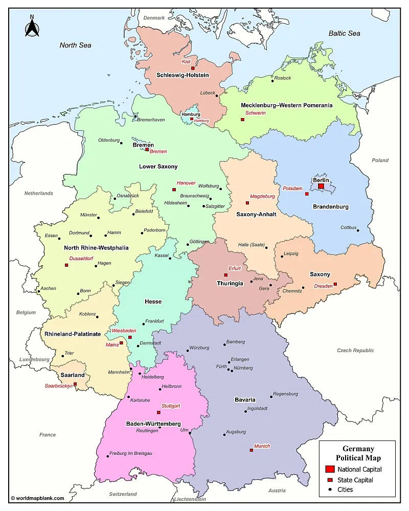 Political Germany Map – Map Of Germany With Cities [Pdf] inside Printable Map of Germany with Cities